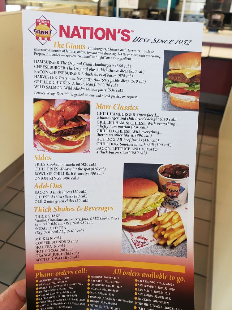 Nation's Giant Hamburgers offers a diverse menu that caters to a wide range of preferences. From their mouth-watering breakfast burritos to their famous pies of the month, there is something for everyone to enjoy. The hamburgers are a standout item, with options like the classic Hamburger, Cheeseburger, and Bacon Cheeseburger all satisfyingly delicious. Customers rave about the friendly staff, quick service, and enjoyable dining experience. The casual yet classy atmosphere makes it a great spot for all occasions, whether it's a quick breakfast or a family meal. Don't miss out on their signature fries, pies, and other tasty offerings that keep customers coming back for more. Nation's Giant Hamburgers is a must-visit for a satisfying and enjoyable dining experience.